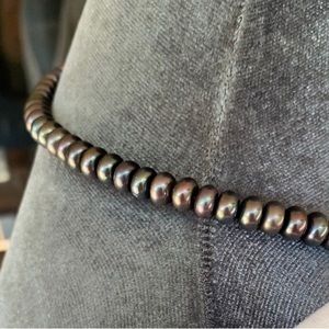 Beautiful necklace and bracelet made of black peacock pearls with silver clasps. Brand new!!!