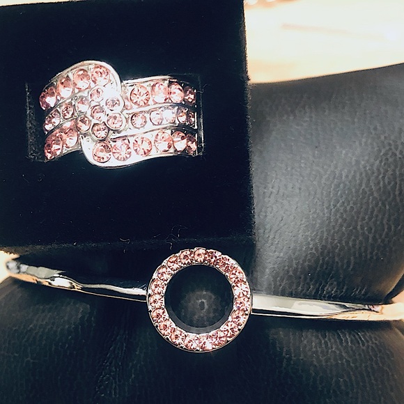 Pink & silver bracelet & ring combo