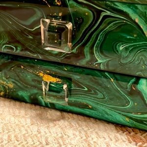 GREEN AND GOLD MARBLE DESIGN. ACRYLIC w Clear acrylic knobs