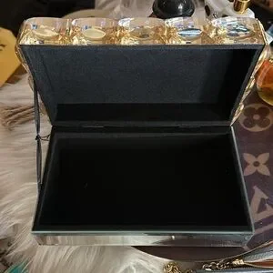 Gorgeous custom made jewelry box, it’s a beautiful mirrored piece. Only flaw is that it has a chip in a corner other than that stunning.