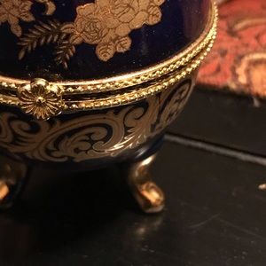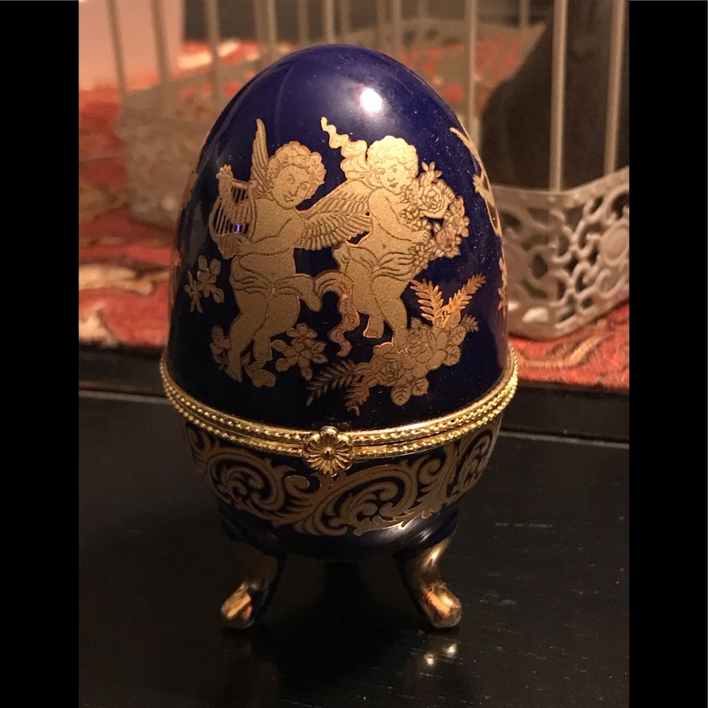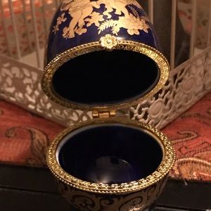 🦋🦋Beautiful faberge egg shaped Jewelry Box with hand painted gold , w/gold leaf trim . NIB made of ceramic 🦋