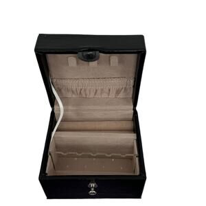 This box is perfect for vacations or business travel. The exterior is faux leather and the interior is felted to keep you jewelry safe. And it has spaces for all the essentials, rings, earrings, bracelets, and more.