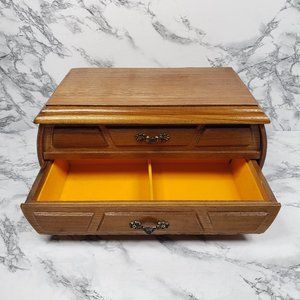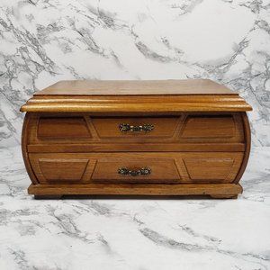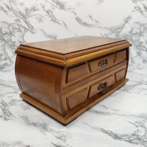 This vintage wood jewelry box is crafted in a classic Bombay style by London Leather for a timeless look. It will make the perfect home for your treasured items.