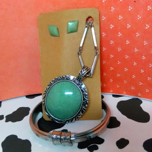 One pair post back earrings NWOT One vintage chain necklace with vintage pendant One hinged bracelet