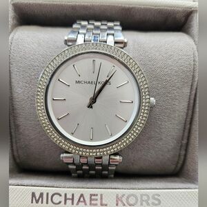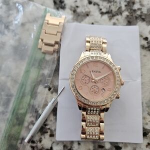 Elegant Michael Kors Darci silver watch with crystals! Original price $275 but on sale now at Macy's for $165. Battery works. Southwest Rose Dahlia 925 SS stud earrings never used! Original price $65. Geneva Pave crystal rose gold calendar quartz watch. Comes with extra links, tool and instructions. Battery died. Original price $35. Never worn and plastic still on face! Figaro 925 SS 8in bracelet. Weight 3gr. Never worn. Original price $89. Additional items have been added since my original posting!