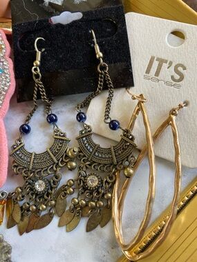 Mix of pierced, clip on, hair Tues, keychain, toe ring, nose ring, bracelet….fun lot!!