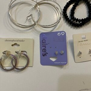 Also included is : Owl necklace, hoops necklace, beaded tree necklace, red balls necklace, yellow bracelet, faux pearl bracelet, one pair of hoop earrings, 2 black bracelets, one purple necklace, purple earrings, 2 pair of cubic zirconia Diamond studs, one cubic zirconia Diamond necklace, navy heart dangle earrings and one heart navy necklace