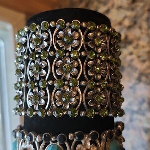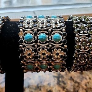 Bracelet Black, Green & Turqoise Gothic metal crystal flow. Bundle Deal