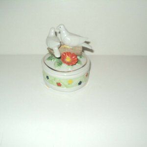 Jewelry Ceramic Trinket Container Box Covered 2 Doves, Flowers Brins of Pgh PA