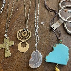 4 necklaces, 5 bracelets. 3 of the bracelets are stretch. All brand new and never worn. Most with tags