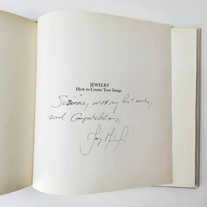 The product is a vintage hardcover book titled "Jewelry: How to Create Your Image" by Jorge Miguel, signed by the author.