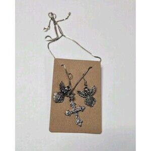 This lot features unique, hand-cleaned pieces of jewelry in silver tones, natural textures, and religious -inspired details.