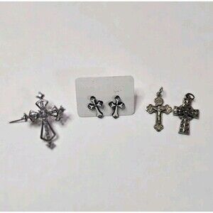 Jewelry Lot Cross Religious Crystal Theme Clean Curated Bundle Free Gift
