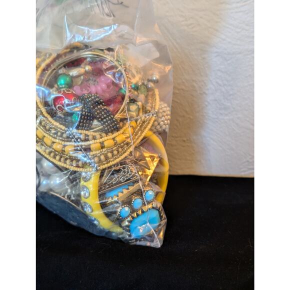 CANNOT BE BUNDLED! Craft Lot Harlow Jewelry Repurpose Bag Over 4 Pounds Beads & Broken Jewelry. This bag is for the person who loves to repurpose jewelry. This bag is full of beads and pieces of jewelry to spark your creative side. You will get the specific bag of jewelry seen in the photographs. The contents of this bag have not been cleaned, and have at one point been untangled, but may no longer be in that state. There are broken pieces and possibly unmatched earrings and possibly some wearable pieces. Because of the weight of this item, YOU CANNOT BUNDLE with anything else. Vintage to current beads, jewelry, and treasures for repurposing.