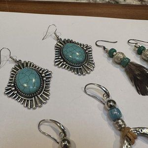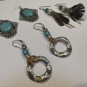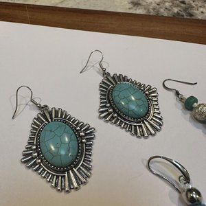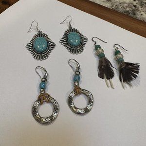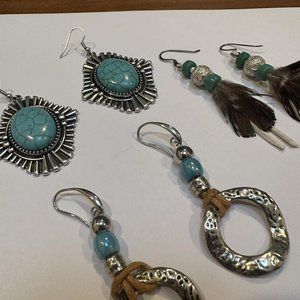 Jewelry Lot Of 3 Dangle Drop Pierced Earrings Blue Tones