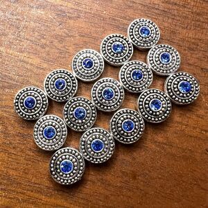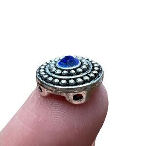Silver and Sapphire Blue Pewter and Crystal Round Spacers Jewelry Making Lot