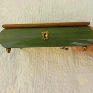 Elegant footed wooden music box with top finely hand painted and inlaid with foliages floral decor..