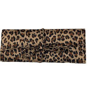 Travel Jewelry Roll Case Trifold Animal Print Packable Brown Tan