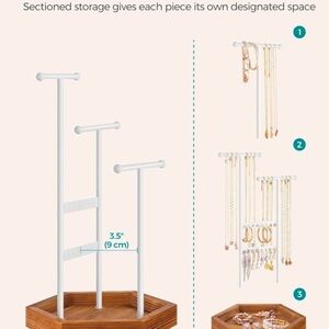 Jewelry Display Holder Stand and 4-Tier Jewelry Stand Bundle, Metal and Wood Jewelry Tree, for Necklaces, Bracelets, Earrings, Studs, Rings, Gifts, White JJS003W01
