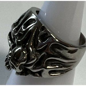 New purchased from a jeweler in New York, going out of business. It is made of all stainless steel both the skull and band and will never rust. Size 8. Popular with Motorcyclists and high school students.