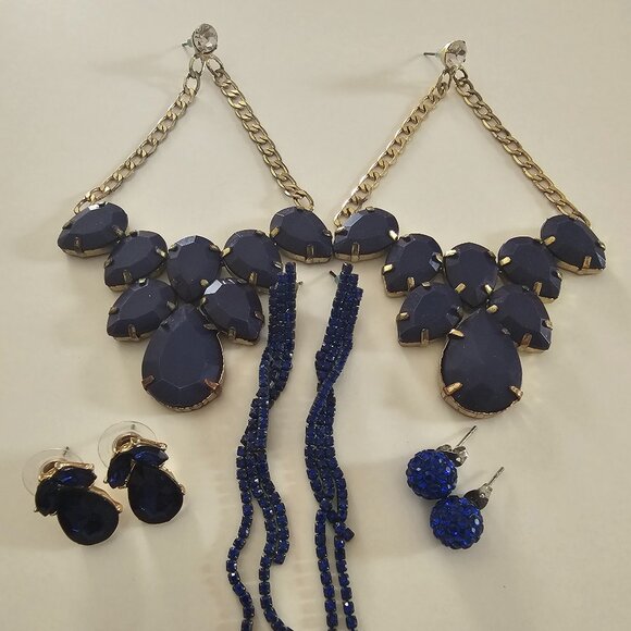 Jewelry Set: 4 Pairs of Blue Earrings and 1 Pair of Blue Flower Hair Clips