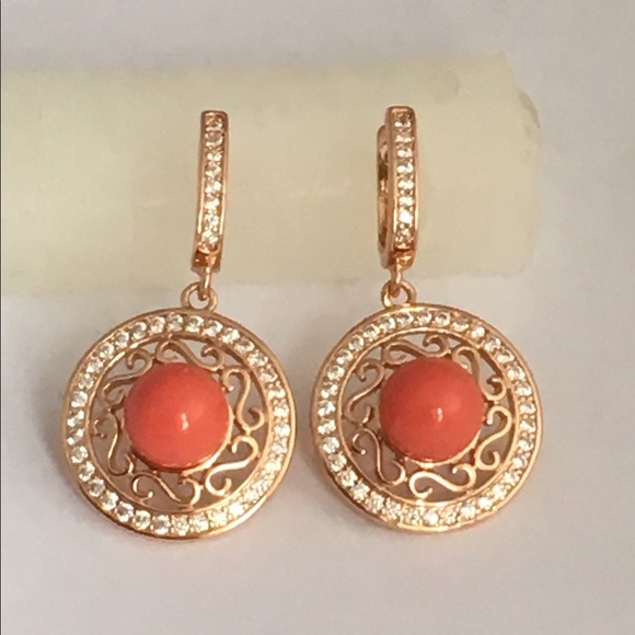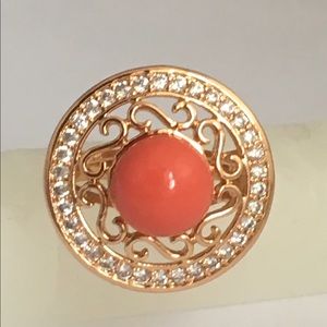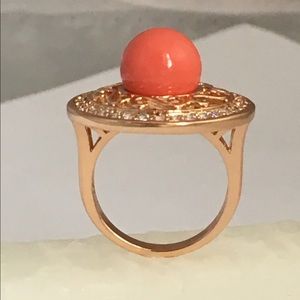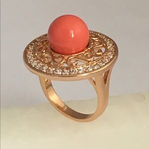 18K Gold Plated Faux Coral Jewelry Set, Ring Size 8
