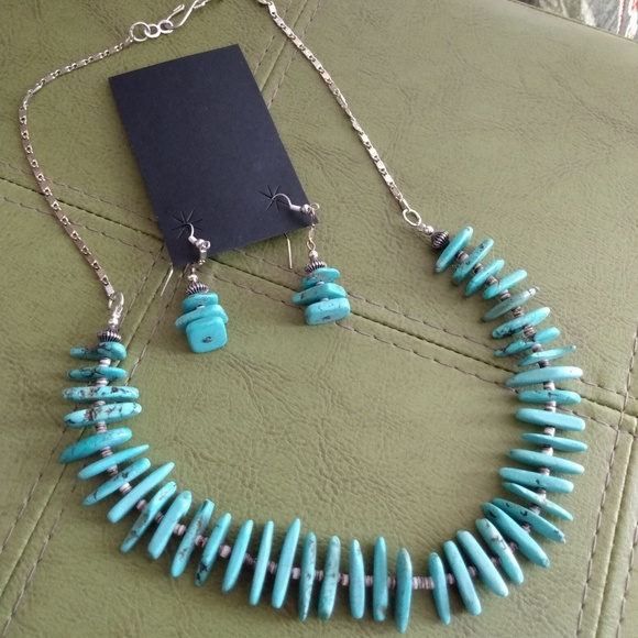 Authentic Navajo necklace and earring set. Brand new, never worn. Turquoise and Sterling sliver
