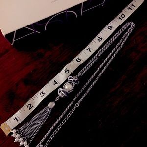 Long chain necklace with a removable enhancer stacked
