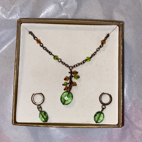 I’ve had this set for a few years and I’ve never worn it. Still in box it came in. Bronzed necklace & earrings with beads. 5/21