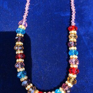 Add a pop of color to your outfit with this stunning jewelry set includes a Multi Color faceted glass beads with rondelles necklace and earrings, perfect for any occasion. The beaded design adds a touch of elegance to the piece. Make a statement with this beautiful necklace and complement it with the matching earrings.