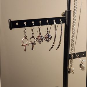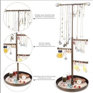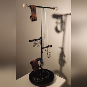 Versatile jewelry tree works for necklaces, bracelets, earrings, rings, and more! Black adjustable tree with felt in the base "bowl" at the bottom for extras. (Jewelry not included!)