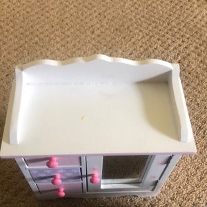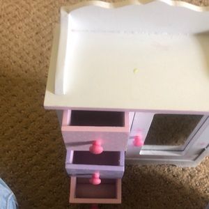 Kid jewelry box with mirror three drawers and one necklace hanger.