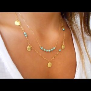 Turquoise necklace, gold chain bracelet and turquoise ring of your choice.