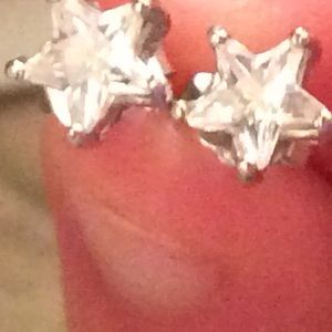 1 heart necklace with black and white polka dots and bright pink necklace chain. 1 necklace that says "Awesome" on it in pink and purple letters. 1 necklace with neon yellow and pink pendants. And lastly 1 pair of star stud earrings with diamonds in the middle.