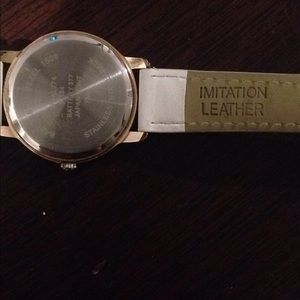 Imitation leather white watch. Fake heavy plastic pearls and a metal bracelet all only worn three times. Great condition.
