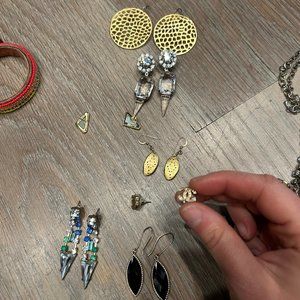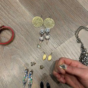 Bundle of 5 necklaces, 7 earrings, and 2 bracelets. Brands include DANNIJO (necklaces), Chanel (earrings), and Club Monaco (earrings). Message me for more information about any individual piece. I will sell things individually as well.