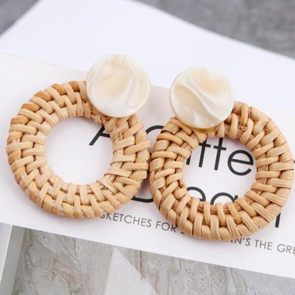Jewelry earrings rattan statement round large fashion Summer fun brand new