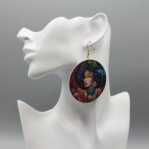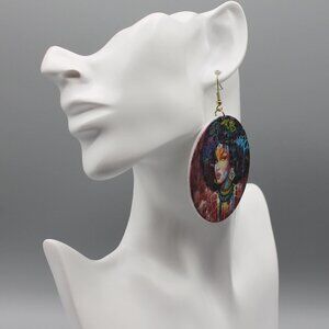Jewelry earrings statement dangle large round black woman graffiti art new