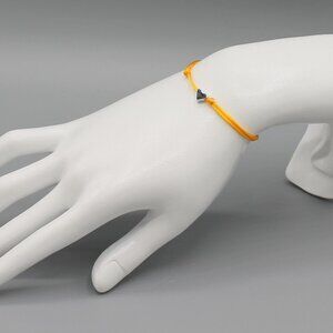 This is a brand new adjustable yellow/orange string bracelet with a heart design which approximately measures 1/4" x 1/4" large. The finished weight of the bracelet is 1 gram.