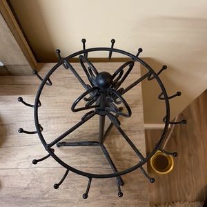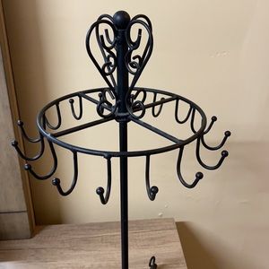 Black, metal jewelry holder. Very nice, has 16 hooks, top spins around! Bought from Target, like new.