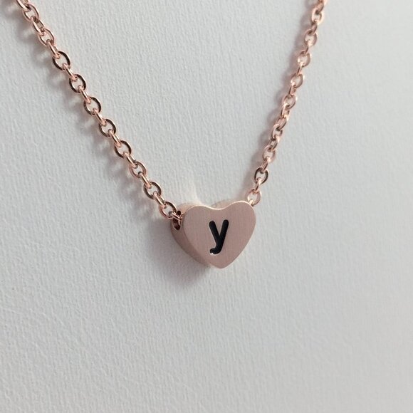 Jewelry necklace alphabet letter Y rose gold tone heart love minimalist dainty