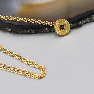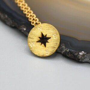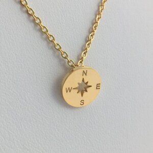 Jewelry necklace pendant with chain compass travel adventure gold tone fashion