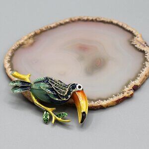 Jewelry pin brooch toucan tropical animal colorful gold tone fashion new