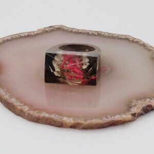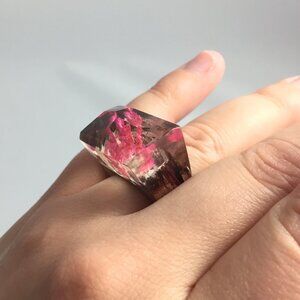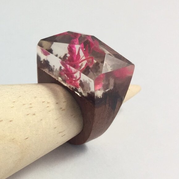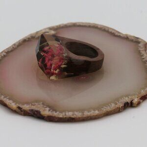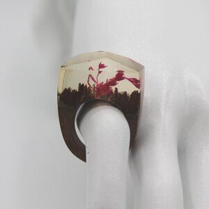 Jewelry ring statement wood wooden pink flower nature size 7 fashion new