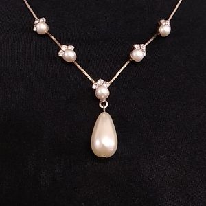 Costume jewelry pearl necklace with little diamond studs and matching earrings