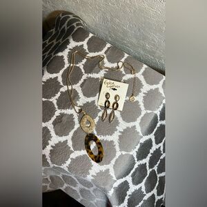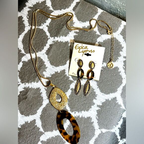 Jewelry set: NWT Erica Lyons necklace and earrings, tortoise accents w gold tone