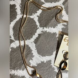 NWT, Long necklace that is adjustable, beautiful gold tone and tortoise drop