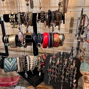 Choose 5 pieces, MIX AND MATCH! We have rings, necklaces, earrings, brooches, bracelets, anklets, keychains, sunglasses, scarves, watches and belts to choose from! If you want it to be a surprise we can do that or if you want a specific aesthetic/style or color group PLEASE let us know and we will create some amazing curated sets together for you to love at a killer price 🥰 This bundle deal is GREAT for smaller businesses who are just starting out/who do local markets, events, shops etc.”