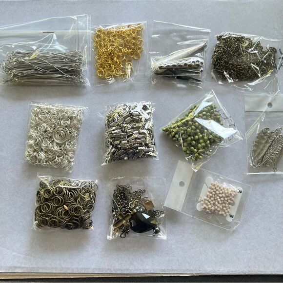A versatile kit of jewelry making supplies featuring gold and silver components. Ideal for crafting unique pieces. A collection of jewelry making supplies including gold, silver, and black components. Perfect for crafting unique pieces.