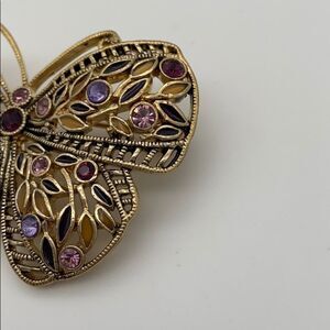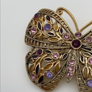 Gorgeous purple jewel-studded butterfly brooch with intricate cut outs. Perfect for a present or gorgeous accent to your outfit